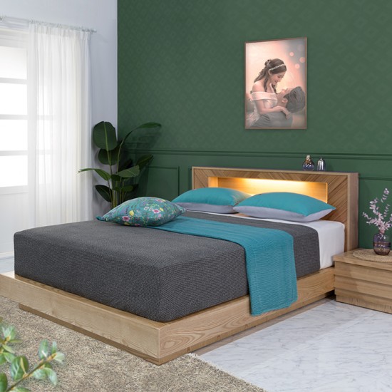 애쉬목의 무늬가 아름다운 헤링본 조명 침대(슈퍼싱글/퀸)