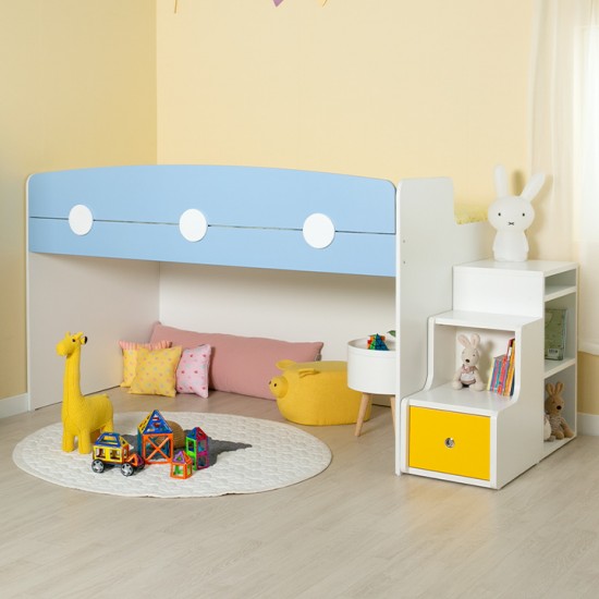 [구성:침대프레임+1200가드+서랍계단세트] E0 안심 자제로 사용한 우리아이 신나는 놀이터