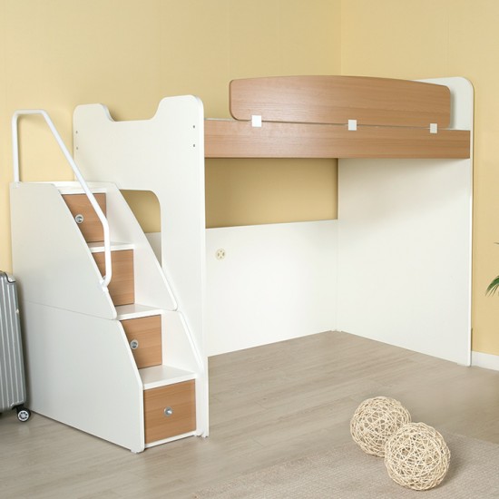 [구성:침대프레임+수납계단+목재가드(오크/화이트)] 성인도 아이도 사용 가능한 수납형침대