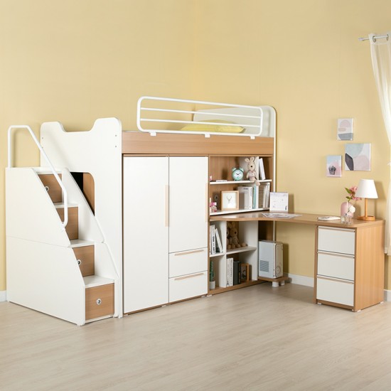 [구성:침대프레임+수납계단+철재가드+H형책상+옷장A+옷장B] 성인도 아이도 사용 가능한 수납형침대