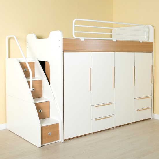 [구성:침대프레임+수납계단+철재가드+옷장4개(A/B선택가능] 성인도 아이도 사용 가능한 수납형침대