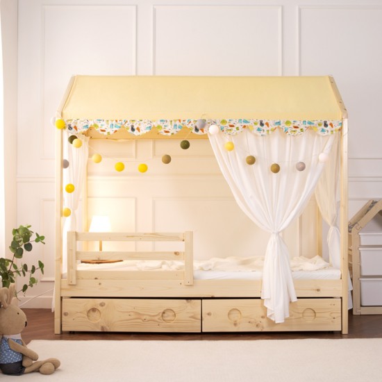(구성:프레임+깔판+사은품 : 안전가드1개+커튼추가구매) 사랑스러운 디자인의 고품질 소나무 원목 침대
